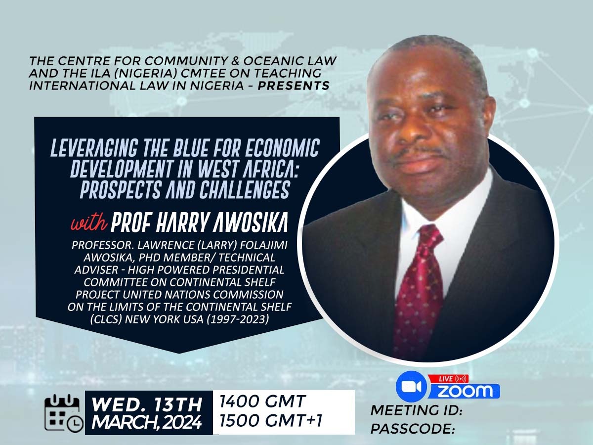 Professor Awosika’s longstanding commitment to the work of the Centre for Community and Oceanic Law has been both encouraging and deeply fruitful. His passion for advancing ocean literacy and promoting the blue economy in West Africa is evident in his consistent support and accessibility to the Centre whenever called upon. Notably, Professor Awosika delivered the Centre’s inaugural webinar on the blue economy, titled “Leveraging the Blue Economy for Economic Development in West Africa: Prospects and Challenges.”